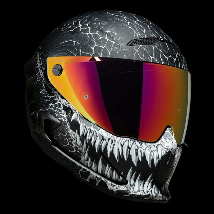 El Ruroc AT4.0 Jormungandr es un casco integral de moto de alto rendimiento que combina seguridad, estilo y tecnología de vanguardia. Su diseño inspirado en la mitología nórdica, con la imagen de Jormungandr, la serpiente gigante, le da un aspecto único y agresivo. Su construcción ligera y resistente garantiza una protección superior sin comprometer la comodidad del piloto.Este casco cuenta con un sistema avanzado de ventilación que asegura una circulación de aire eficiente, manteniendo la cabeza fresca durante largos recorridos. Su visera resistente a los arañazos y con tratamiento antivaho ofrece una visibilidad clara en todo momento, mientras que el visor solar integrado proporciona una mayor comodidad y seguridad en condiciones de luz intensa.El interior acolchado, fabricado con materiales transpirables y desmontables, ofrece un ajuste ergonómico que se adapta perfectamente a la forma de la cabeza, mejorando la comodidad en trayectos largos. Con su diseño aerodinámico y su certificación de seguridad, el Ruroc AT4.0 Jormungandr es la elección ideal para motociclistas que buscan un casco de alta calidad con un estilo imponente y un rendimiento excepcional.